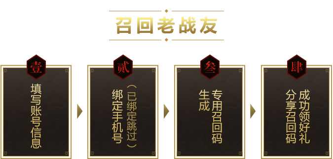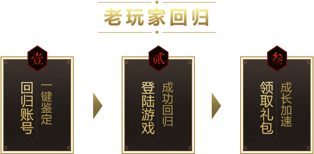 2.回归流程:鉴定账号--登录游戏--前往礼包中心领取任意游戏礼包