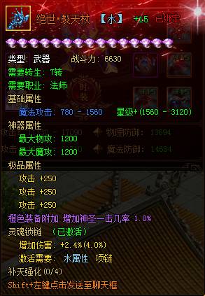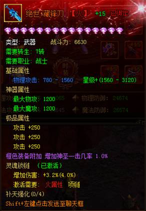 以五转武器为例,升级为绝世神器的武器可额外增加1200攻击: