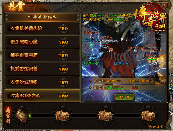 重赏之下必有勇夫,由贪玩游戏独家代理,盛大正版授权的《传奇世界》网页版以传承经典任务,创新特色玩法著称。正所谓重赏之下必有勇夫,《传奇世界》网页版以大量藏宝图作为悬赏奖品,挂出大量悬赏任务。今天要介绍的,就是悬赏任务的那点事。