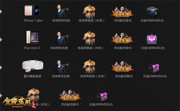 《贪玩蓝月》第二届3V3巅峰赛现已开启报名,玩家战队在8月30日前,通过不断挑战其他战队获得更多积分,并在海选赛结束后,总积分排名前64名的战队自动晋级决赛圈。《贪玩蓝月》第二届巅峰赛奖励再次升级。凡参与本届巅峰赛的战队,无论战绩如何,均可获得价值100元礼包一份。总积分前100名同样能够获得相应数量的英雄纹章和水晶纹章。除此之外,拿到最高荣誉的战队,每人可获得一台iPhone7 plus。实实在在的奖励,真刀真枪的战斗,就在《贪玩蓝月》巅峰赛,赶紧来报名吧。