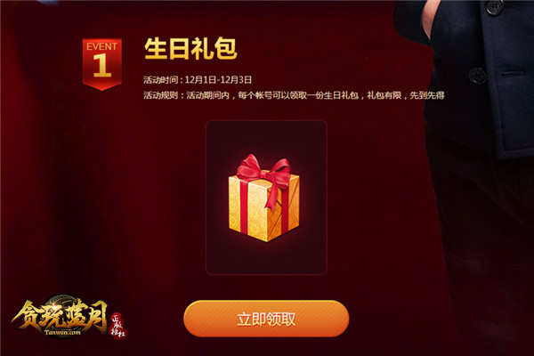年逾半百,《贪玩蓝月》再次祝贺代言人张家辉生日快乐,也借助这个历史性时刻,《贪玩蓝月》在12月1日-12月3日送上一份珍贵的张家辉生日礼包。数量有限,先到先得,与贪玩游戏一起为张家辉点亮那一支支蜡烛吧!
