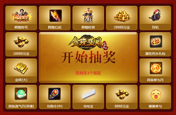 领到小蛋糕能干嘛,当然是抽奖啦!影帝张家辉听说《贪玩蓝月》为他举办一场生日会,二话不说就是送福利。凡消耗一个小蛋糕就可进行一次抽奖,抽取辉煌称号、辉煌套装、辉煌幻武、28888元宝、高级修为丹、攻城耳机等丰富大奖。人人有份,永不落空,张家辉生日福利就等你来领了。