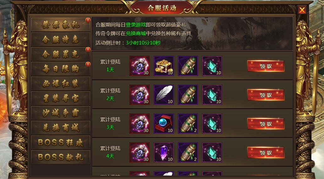合服1-7天玩家登录游戏即可领取超值豪礼