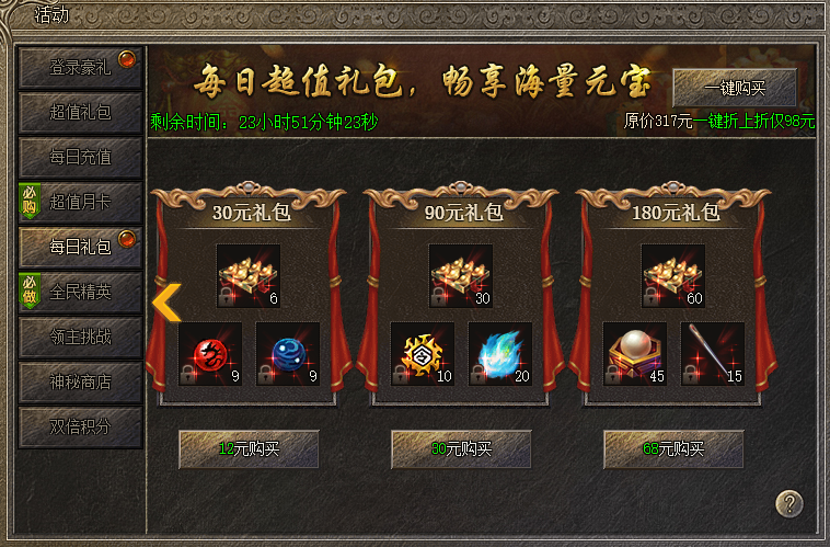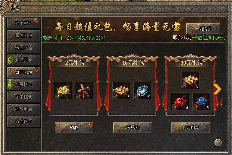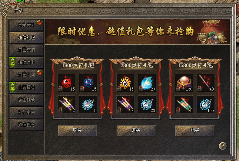 说明:超值礼包,开服即有,每个礼包终身只可购买一次!
