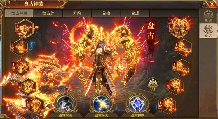 1、新增上古神装-盘古神装,激活盘古之力,获得额外属性加成和压制。