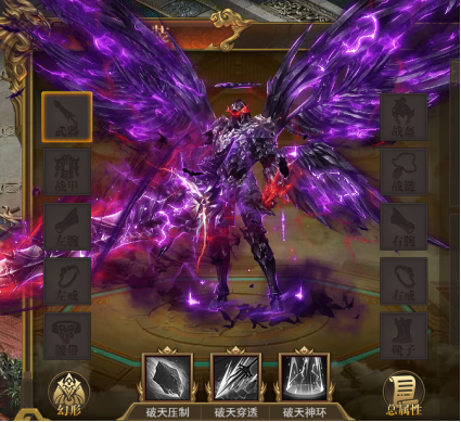 神装幻形:全套三阶可激活破天神装形象;