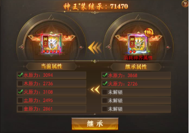 a. 神1及以上的神王装备可开启属性继承功能,消耗神界属性进行继承;