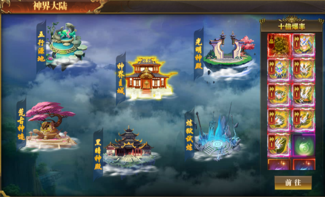 神界挂机地图,主要产出神王装,神阶位阶越高可进入的层数越高。