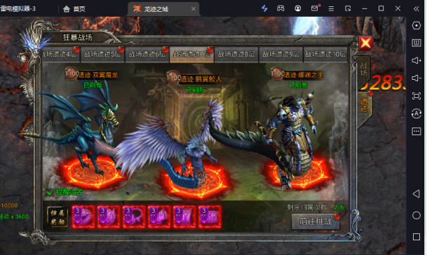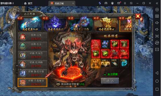 该玩法比较简单,主要就是打这个几个怪,怪物的奖励也会睡着后续天数等级而提高奖励,怪物基本是没什么伤害的玩家很容易就打死,但是有次数限制,所以是个比较简单的任务,怪物刷新也很快就三分钟。主要掉落材料,龙生九子。开启时间:开服第一天。
