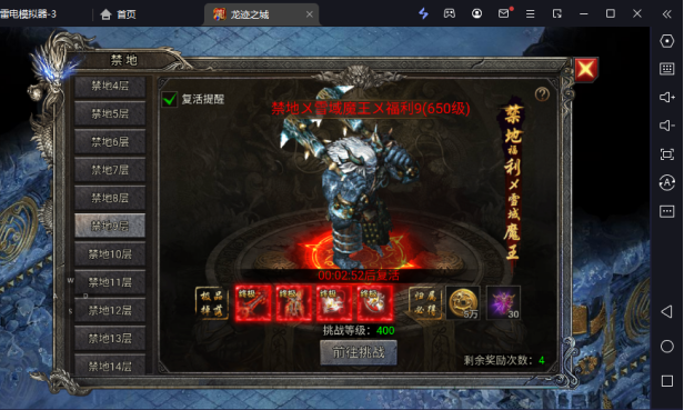 禁地boss玩法跟天空之城如出一则都是第一天开启的活动,相对玩家是福利的玩法活动,主要产出传奇币和勋章碎片等其他装备等等。也是会有次数限制。玩家可以通过获得令牌提升次数。开启时间:开服第一天。