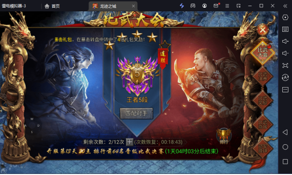 玩法主要前期玩家匹配对手提升自己等级,页面会显示结束时间,到最后一天会分为比武决赛分为甲乙丙三个组,每个组的冠军都能获得无双稀有度的称号7天和其余的奖励,在比赛期间玩家还能下注,赢了的玩家还能使用比武令牌去商城兑换升星石,增加装备的基础属性。获得最终的甲组冠军还会哦受到玩家的膜拜,b格拉满。开启时间:开服第三天开启。