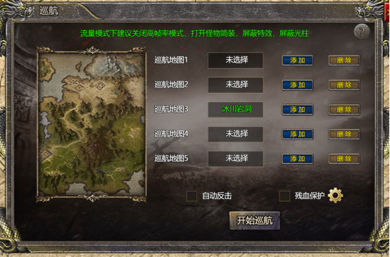 3. 功能说明:激活王者赞助可以使用在线巡航,选择挂机地图,自动挂机解放双手,可开启残血保护,血量不足自动回城。
