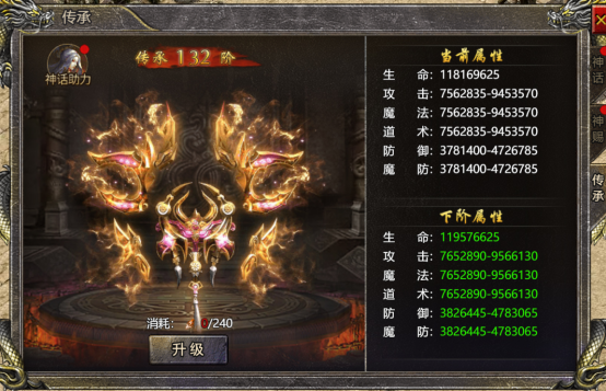 3. 功能说明:神话禁地首领会掉落传承结晶,消耗传承结晶接受传承,可获得基础属性增幅