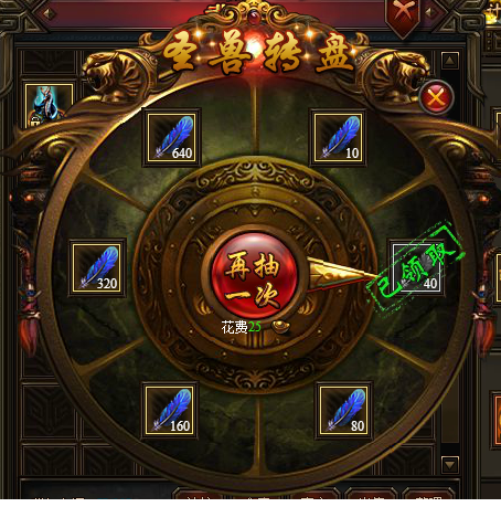 >每日充值100元宝即可获得1个圣兽之赐道具,点击圣兽之赐即可打开圣兽转盘