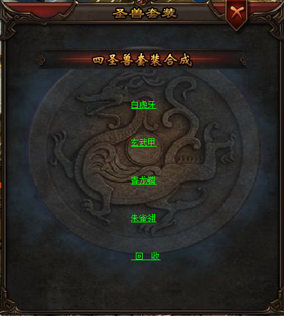 >点击你想要合成的圣兽装备,可打开对应的合成界面,消耗一定的材料即可兑换或升阶圣兽装备