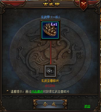 Ø根据对BOSS造成的累计伤害,可获得最多5次伤害奖励,奖励为合成玄武圣兽装备—玄武甲的材料