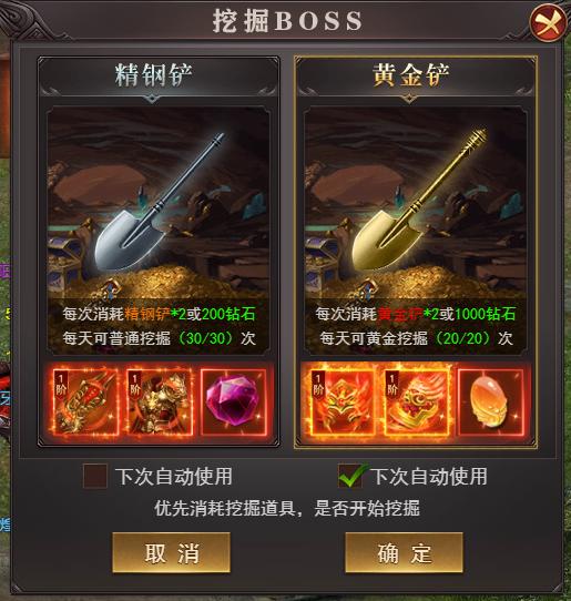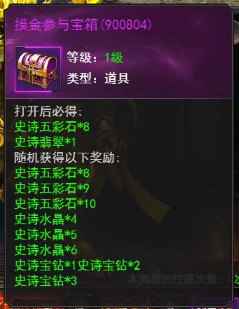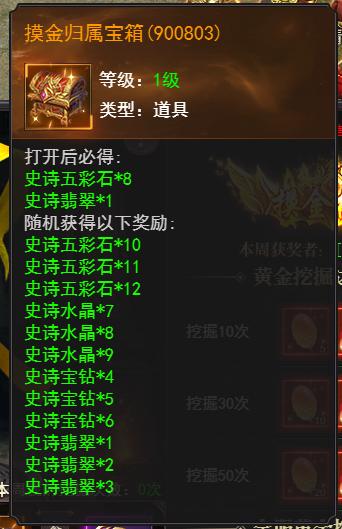 开服第30天可选择黄金挖掘,黄金挖掘可获得史诗翡翠、史诗五彩石珍稀材料
