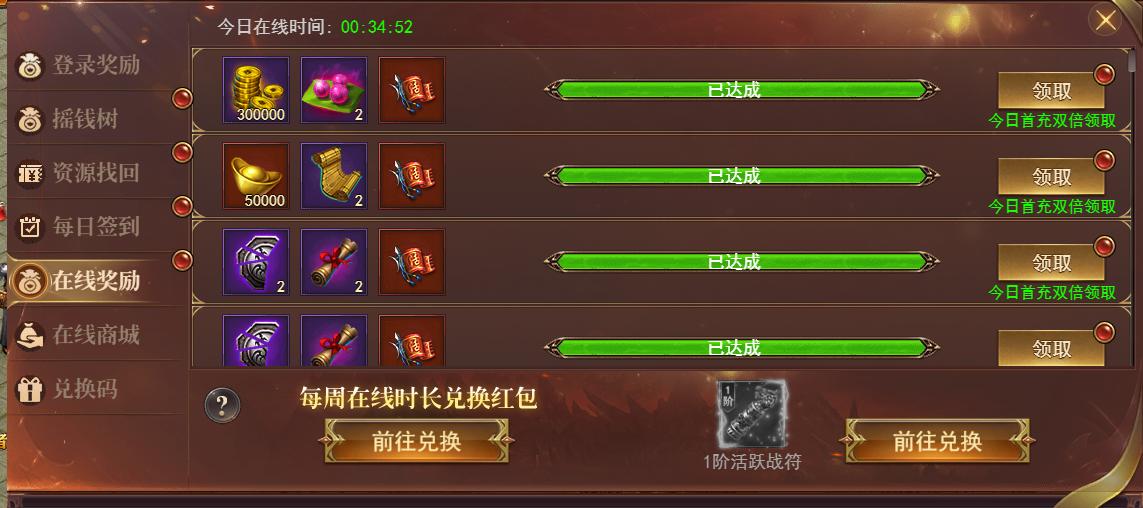 1、每周累计在线时间在线送钻石改为在线送活跃令。