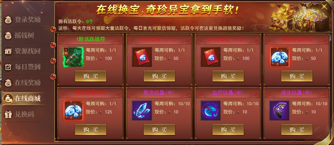 2、活跃令牌可以在商城兑换活跃战符装备,红包,钻石。