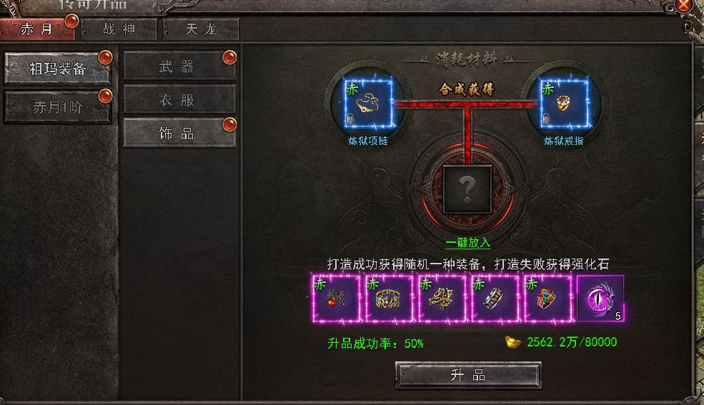 传奇装备打造包含:强化,升品,升阶,勋章合成