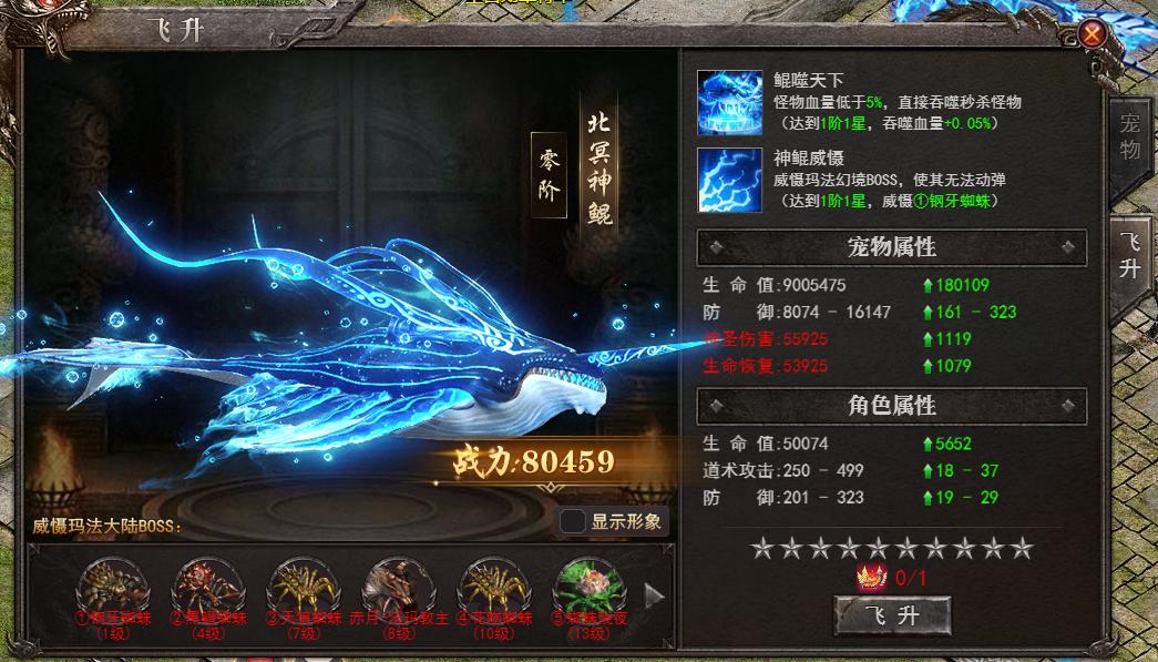 效果:100%眩晕幻境怪物。提升宠物飞升等级,可震慑幻境的怪物上限提高