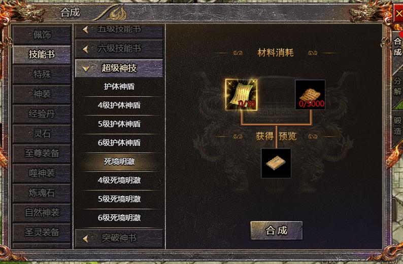 1、开服60天后,可在【合成-技能书】中合成技能【死境明澈】的相关技能书
