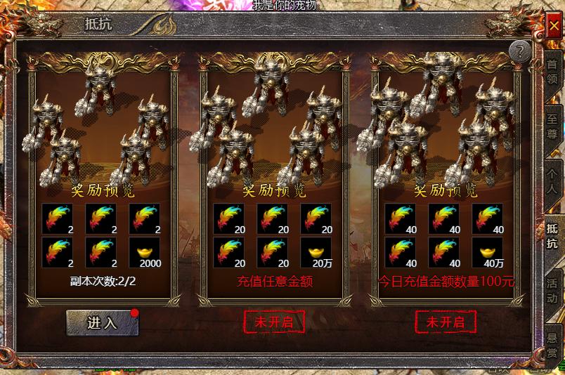 3、首领挑战新增加抵抗副本,挑战副本获得七彩羽毛