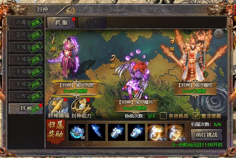 2、挑战boss可以获得仙元精魄以及装备等道具