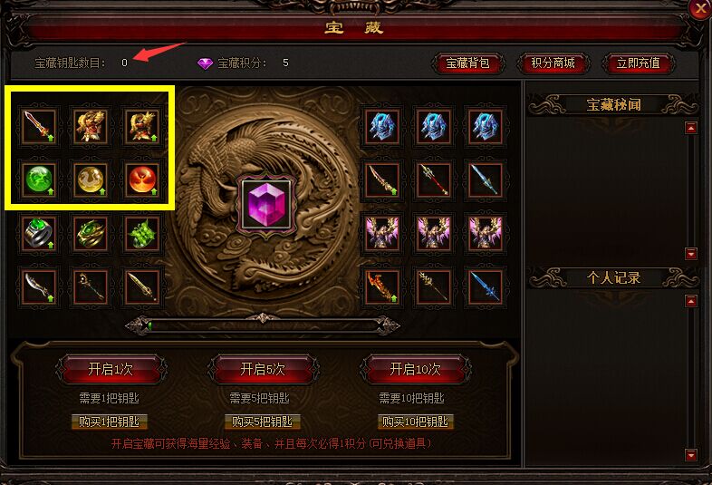 注:充值后宝藏钥匙会自动赠送到宝藏钥匙数目中。