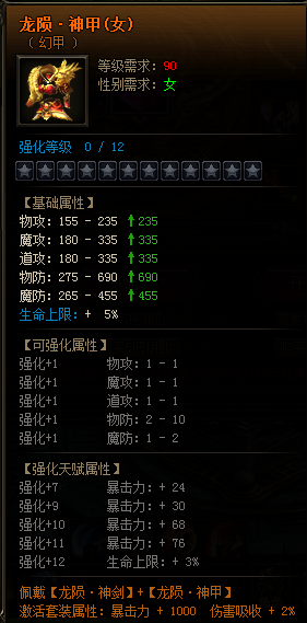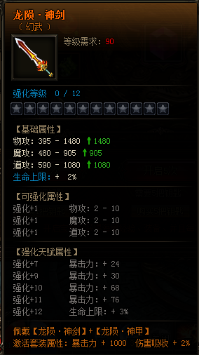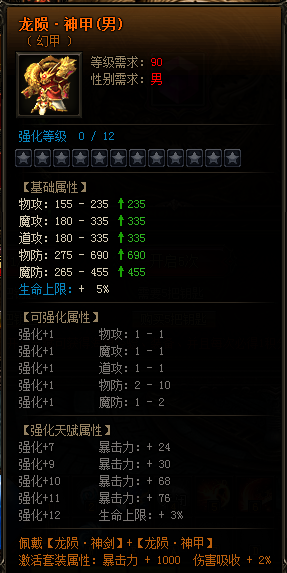 【龙陨·神剑】【龙陨·神甲】属性详情: