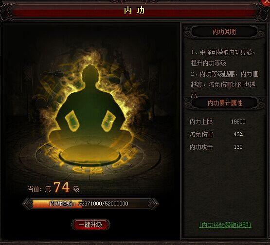 4、 提升内功等级,可提升内力上限,并提高内功抵消伤害的比例