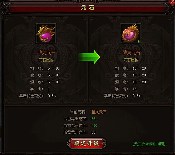 1、 元石可增加大量攻击、暴击力、以及暴击伤害减免属性