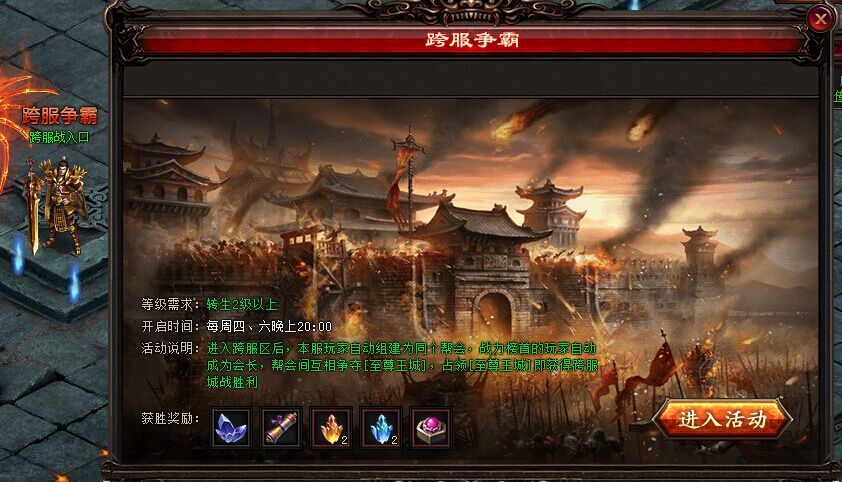 4、 跨服城战胜利的帮会成员,可获得制定奖励