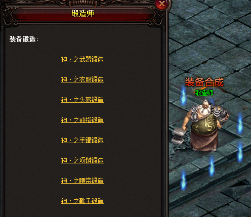 在“雷霆之城”NPC“锻造师”处,可将转生装备合成更强大的神装,详情查看游戏内设置