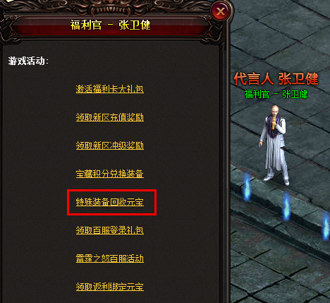 在“雷霆之城”NPC“福利官”处,可将部分稀有装备,回收为元宝或宝藏积分,回收详情见游戏内设置