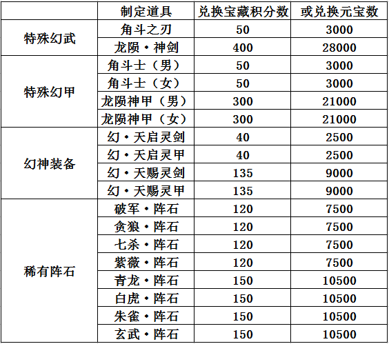 三、开放部分稀有道具可兑换元宝或宝藏积分