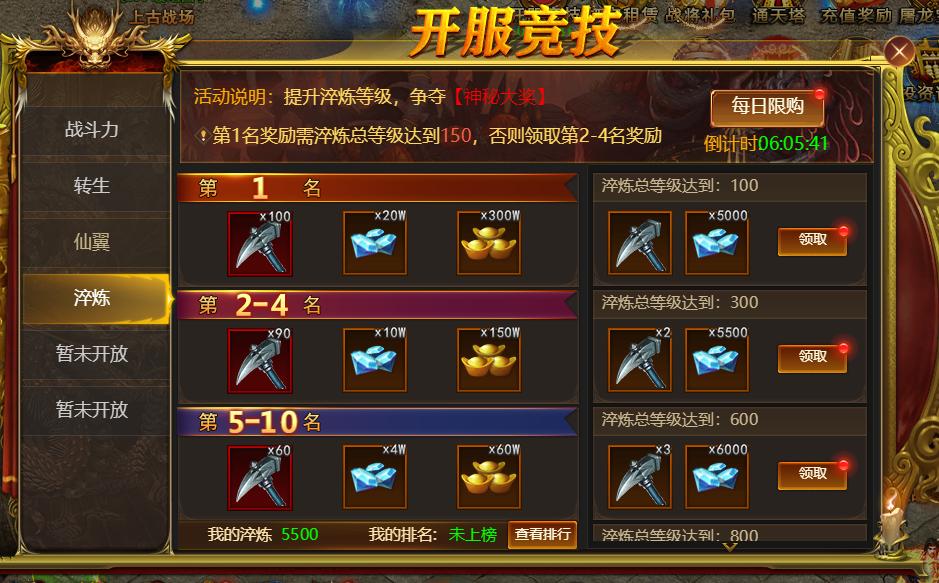 2. 开服竞技奖励的是次日开放系统玩法的材料