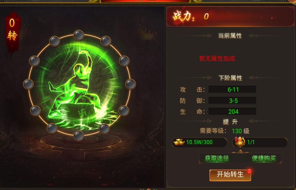 升级材料:元宝,转生石