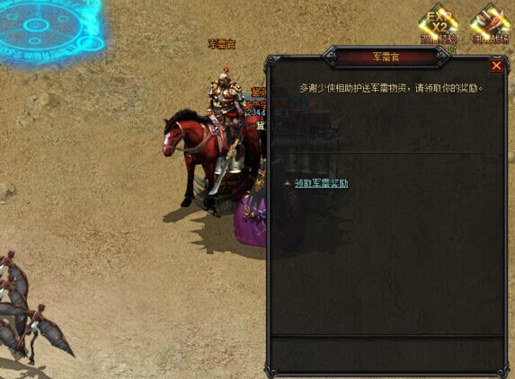 角色≥45级之后可在土城NPC押镖使者处领取镖车护送至军需官处。