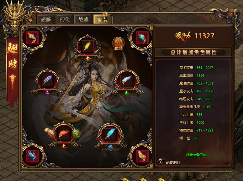 新增翅膀,坐骑副装系统