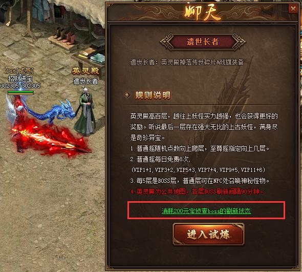3、消耗200元宝可查看英灵殿BOSS的刷新情况