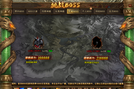首杀BOSS玩家将获得10000元宝奖励!超强BOSS,等你挑战!