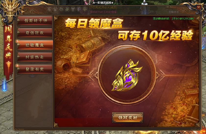 活动规则:活动期间,每日可领取经验魔盒。