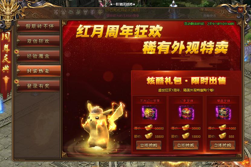 活动规则:活动期间,周年庆炫酷礼包特惠出售,机会不容错过。