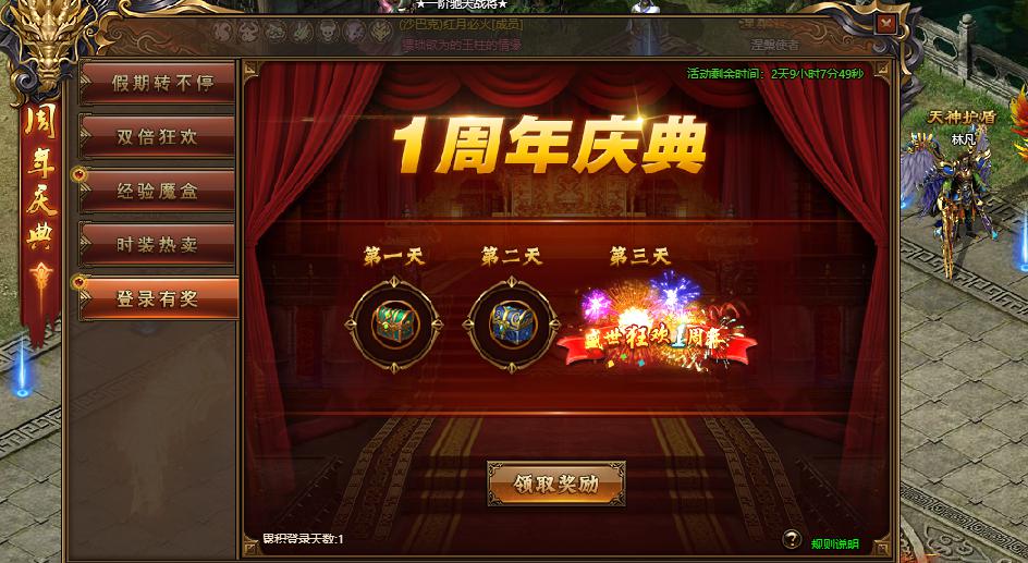 活动规则:活动期间,连续登录三天可领取周年称号。