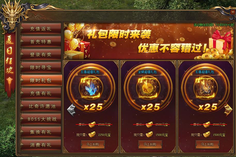 活动规则:活动期间,多款限时大礼包等您来拿哦,领到手抽筋有木有hu