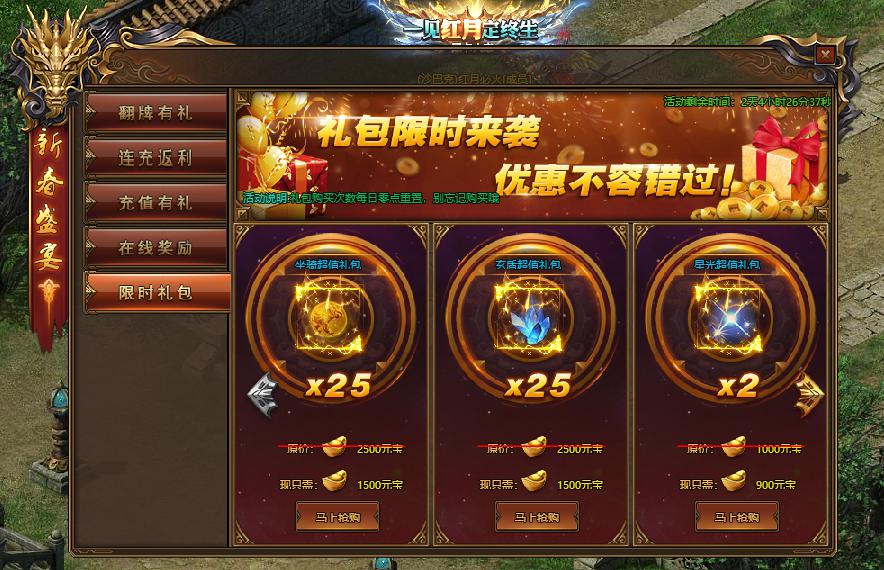 活动规则:活动期间,可购买超值礼包,购买次数每日零点重置。