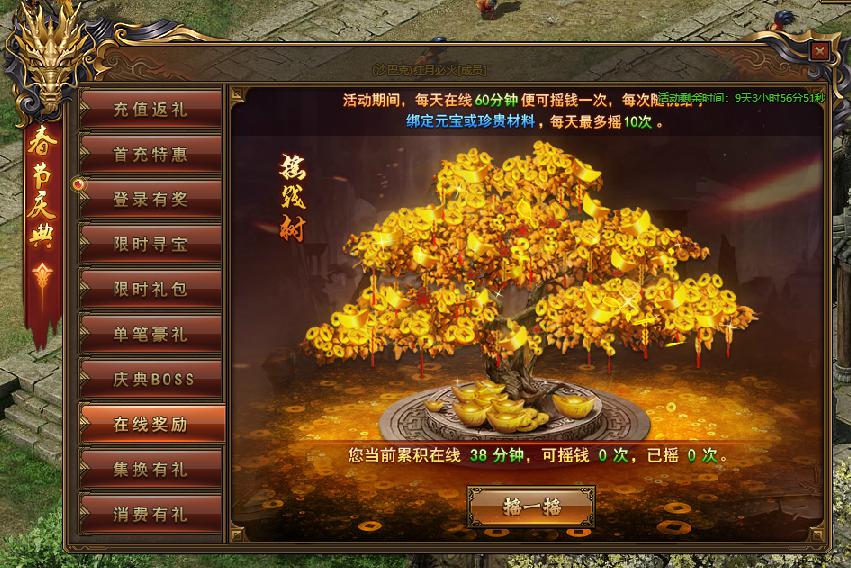 活动规则:活动期间,每天在线60分钟便可摇钱一次。