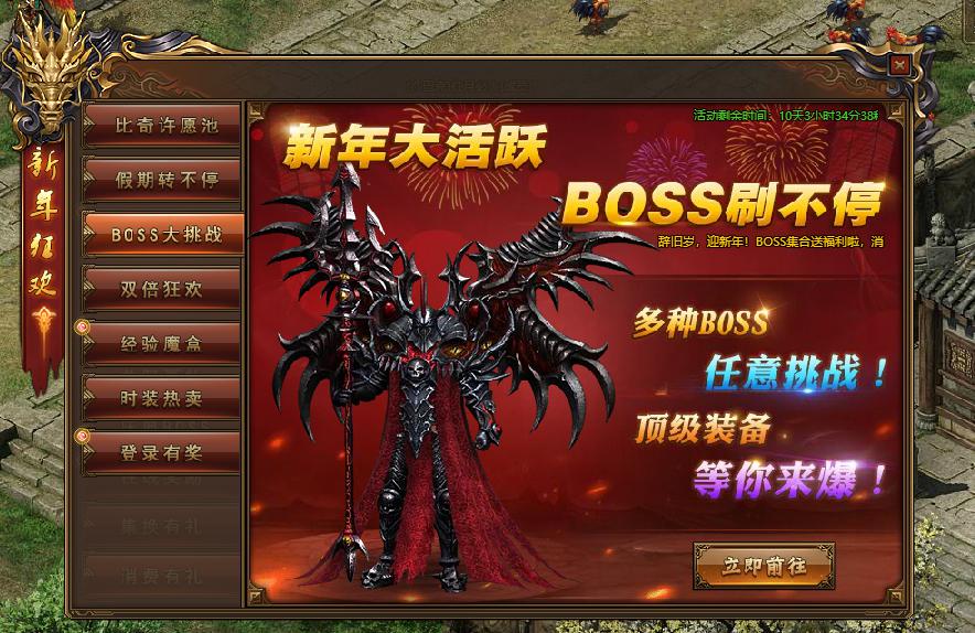 活动规则:多种BOSS任意挑战,顶级装备等你来爆!