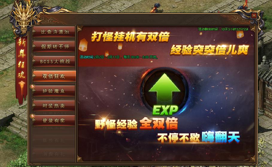 活动规则:活动期间,野怪经验全双倍,不停不歇嗨翻天.